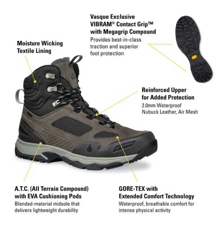 Struggling with slippery slopes or uncomfortable narrow fits? Experience confident traction on wet rocks and loose gravel through the Vasque-exclusive Vibram® Contact Grip outsole with Megagrip Compound—engineered specifically for unpredictable mountain conditions. The lightweight A.T.C. Midsole features strategic EVA cushioning pods and a TPU shank for responsive stability over uneven ground, all while keeping weight down at just 2 lbs. 11 oz.