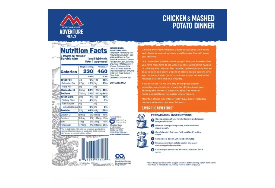 Mountain House Chicken Mashed Potatoes Ready in 10 Min Backpacking Meal