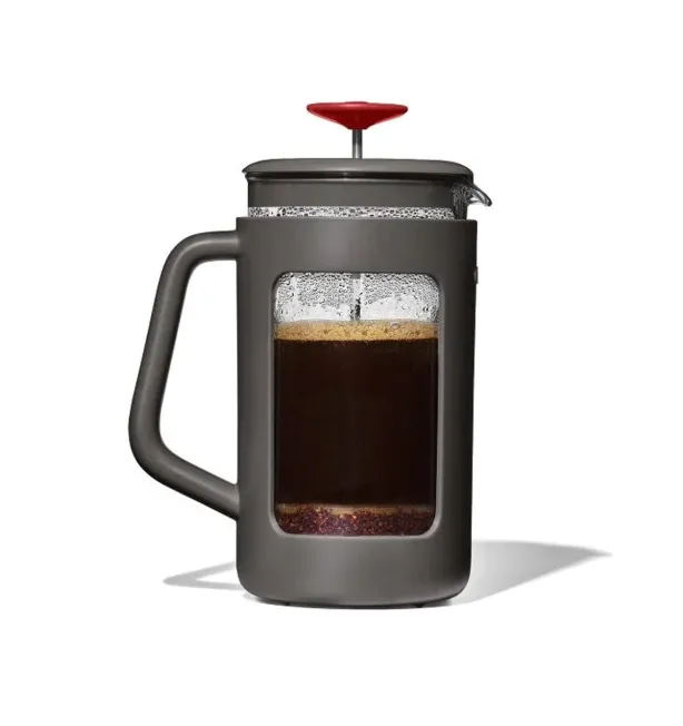 Craving rich coffee anywhere your adventures take you? Meet the OXO Outdoor Campgrounds French Press—your ultimate portable French press for camping trips and hiking trails. Crafted from durable, shatterproof coffee press material (BPA-free Tritan™ Renew*), it transforms recycled plastics into a rugged companion that laughs at bumps and drops. No more gritty brews! Its stainless steel filter with silicone edge combines with a spout’s secondary filtration for smooth, clean-tasting coffee every time—ideal for coarse grounds on the go.