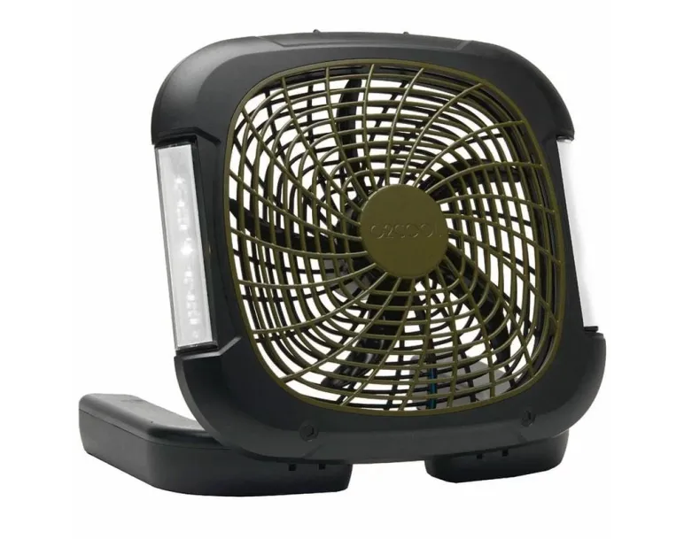 Need a reliable light and fan for camping trips or power outages? This fan operates on 6 D-cell batteries (not included), making it perfect for off-grid use. The sturdy base pivots to stay stable even on uneven surfaces, so you can set it up confidently on a picnic table, a rocky campsite, or a slanted nightstand.
