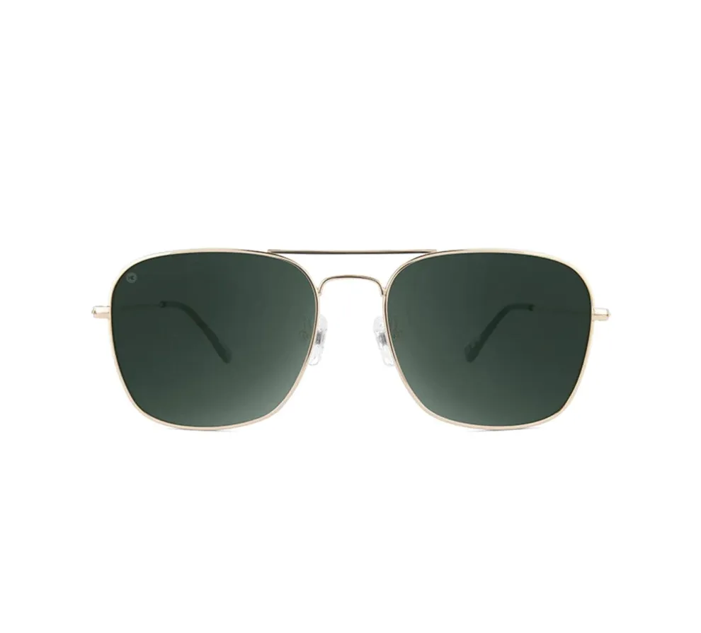 Feel the wind in your hair and the sun at your back with these recycled metal aviator sunglasses—your perfect companion for open-road adventures. Designed for medium to small face shapes, their iconic gold frames and polarized aviator green lenses deliver timeless style with modern durability.