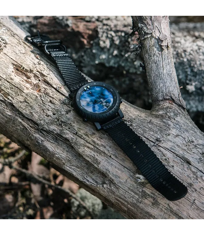 The lightweight yet tough composite case pairs with a durable textile strap (Berry Amendment compliant) for all-day comfort. Track sunrise/sunset times, switch between metric/imperial units, and rely on a user-replaceable CR2032 battery (~12-month life).